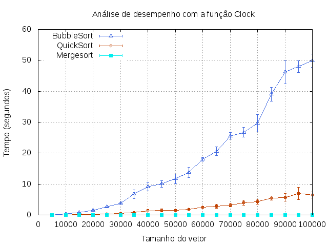 gnuplot performance.gnuplotIn this section we have the results of the tests of the algorithms BubbleSort, QuickSort and MergeSort.