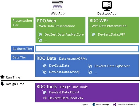 The above challenges impose great burdens for developing and further changing an enterprise application. Many frameworks are trying to solve these problems however they are all far from ideal. RDO.Net is the only solution to these problems in an integral, not an after-thought way (strongly recommended reading through):