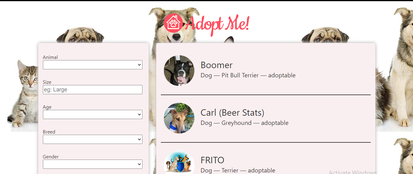 A React web app that let users adopt the pet of there choice