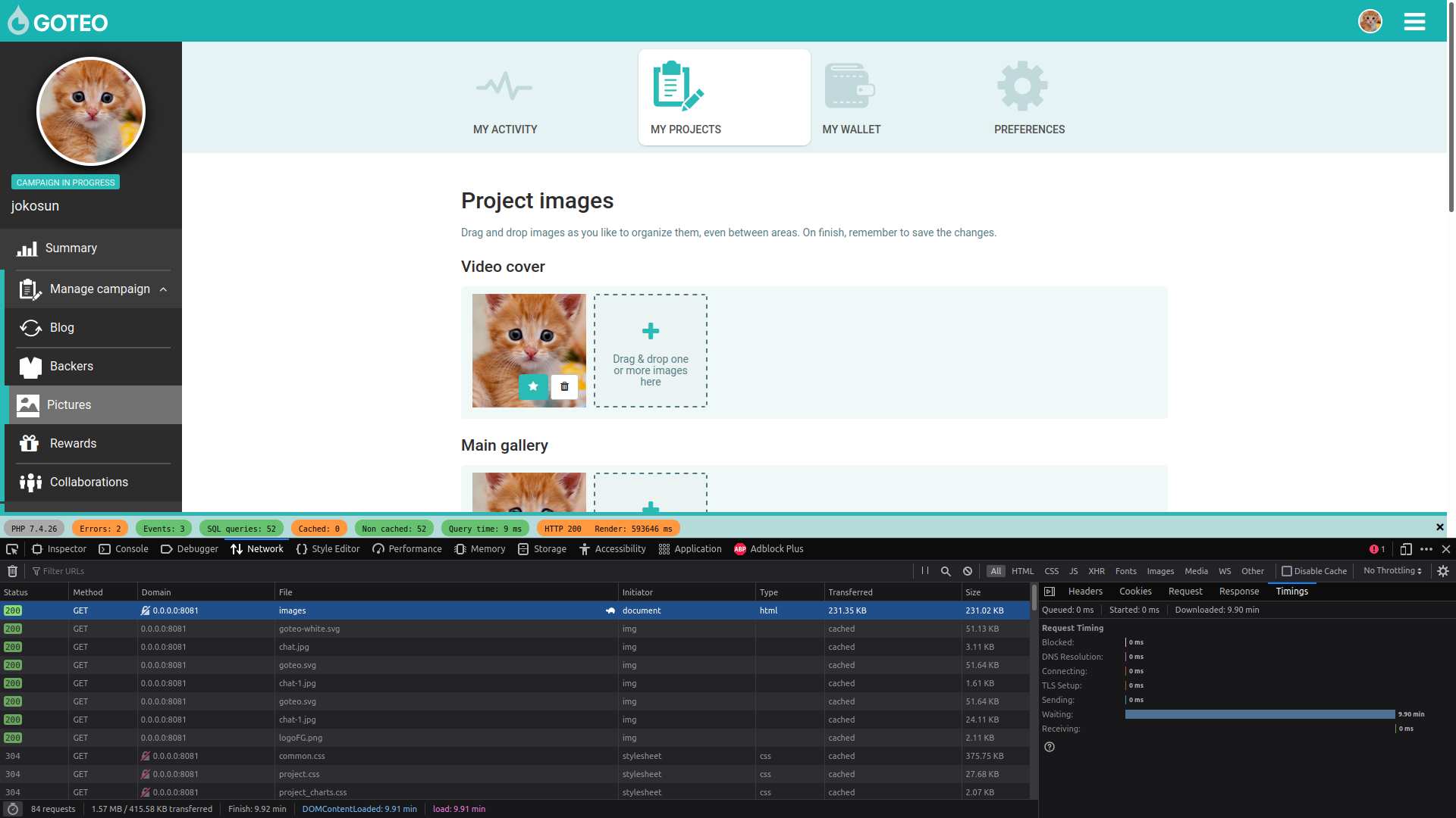 When I browse the Goteo platform once I launch with docker/up, the first requests send 200-500ms then quickly it drops to 400 seconds the request, making navigation and testing difficult.