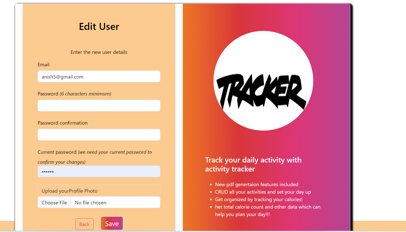 6) Show and Edit features for Activities