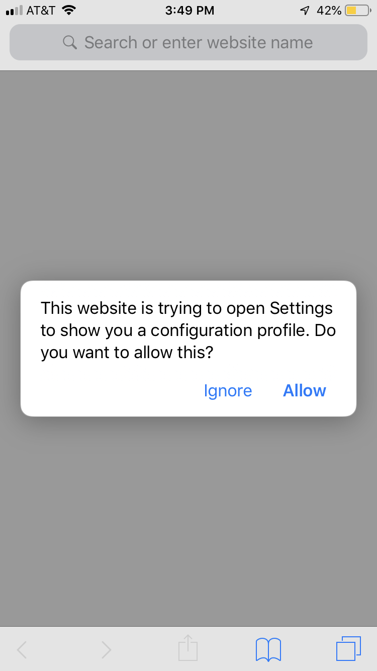 Press allow and continue the installation of the certificate. If you are on Android is basically the same thing just save it to an SD Card or your file system, naviagte to it and press on the cert to install it.