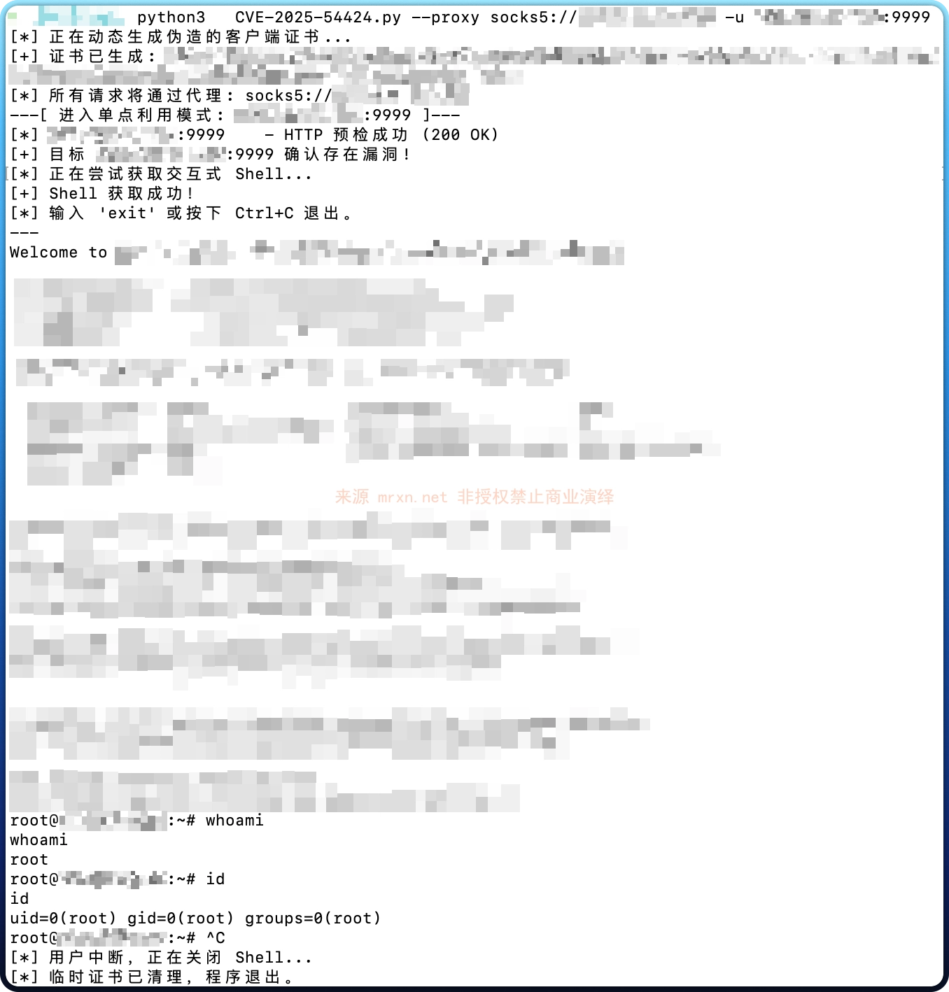 if exploit_running: print("\n[*] 连接意外关闭。"); exploit_running = False