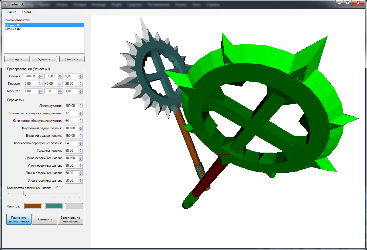 Объект, который предстоит создавать с учётом входных параметров и отрисовывать на экране — оружие одного из существ известной игры Heroes of Might and Magic V (секира?).