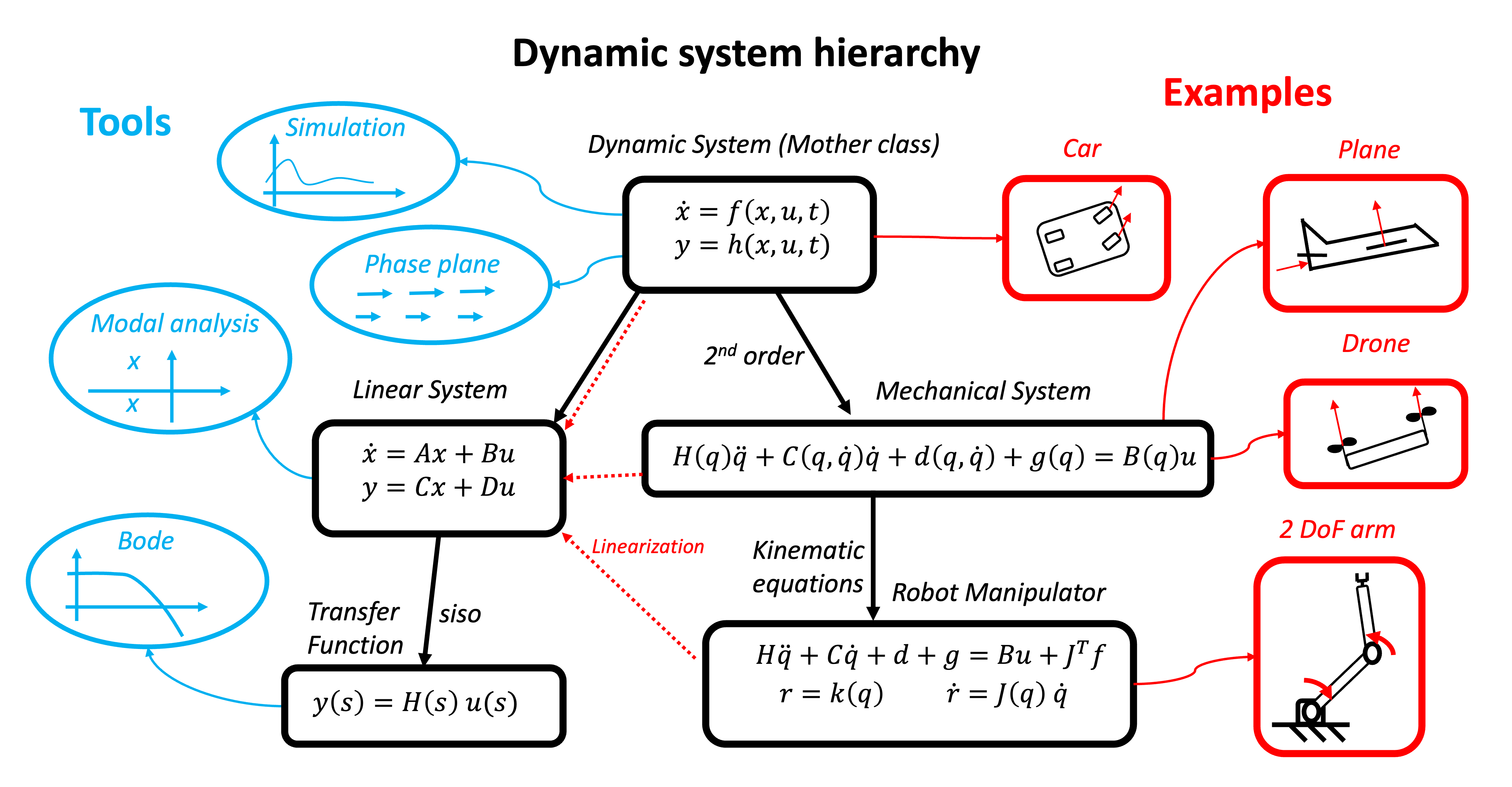 - Linearisation (from any dynamic class to the state-space class)