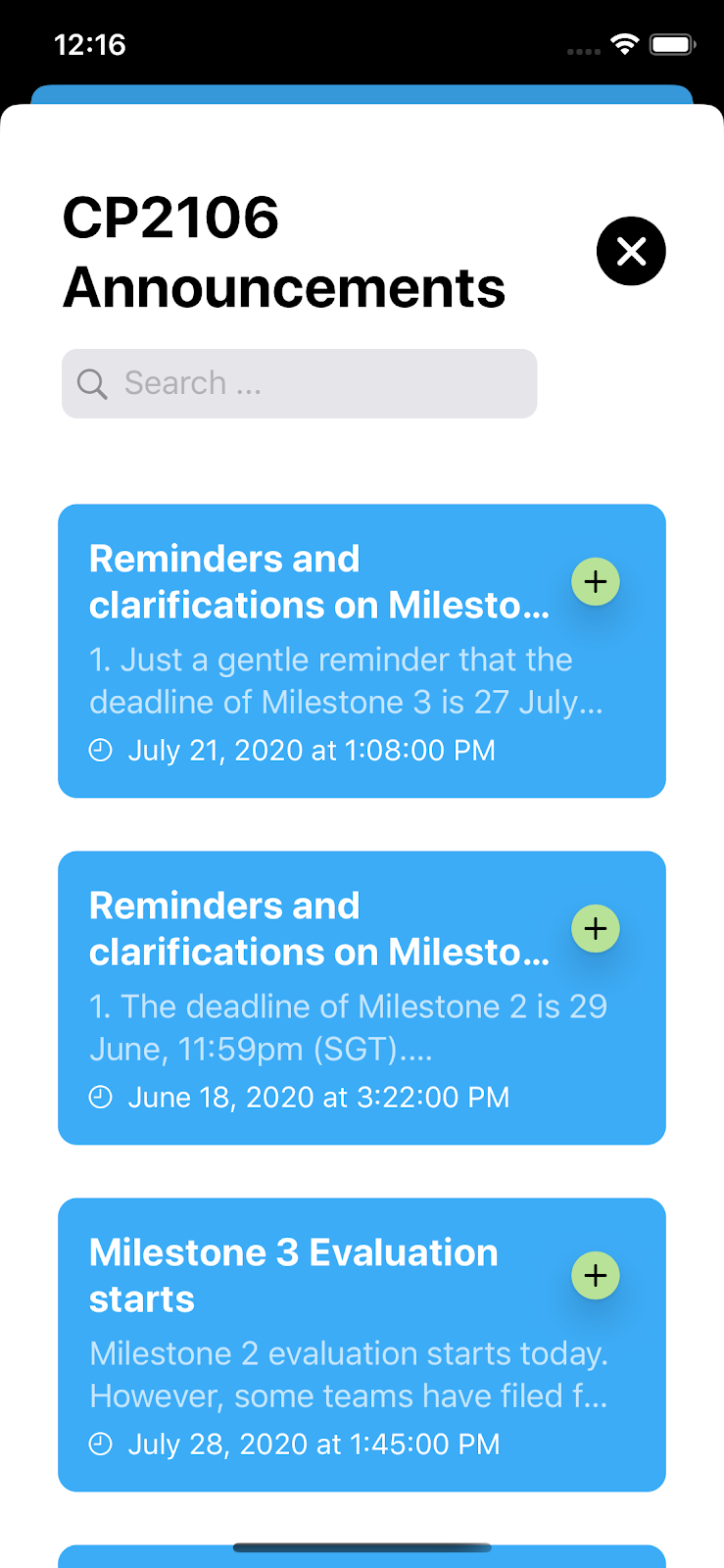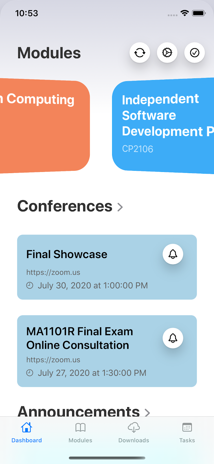 - unnecessary abbreviation of list title. e.g. “MA1521 Announcements” displayed as “MA1521...” --> add a line breaker between module code and “Announcement” (“Conferences”) since the intended way is to display the title in two lines