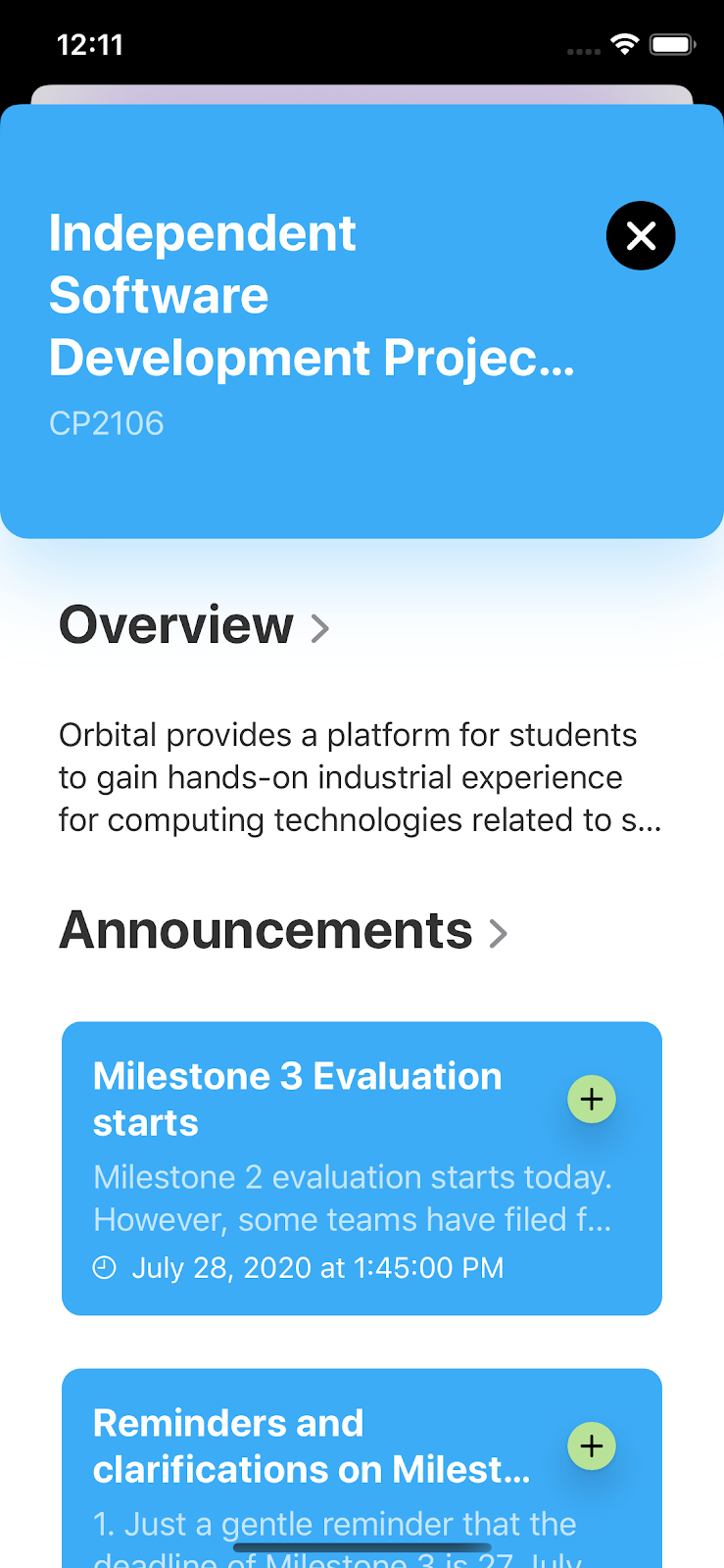 List of module taken this semesterSmooth transition to show the detailed information of a specific moduledetailed page showing announcements, files, etc