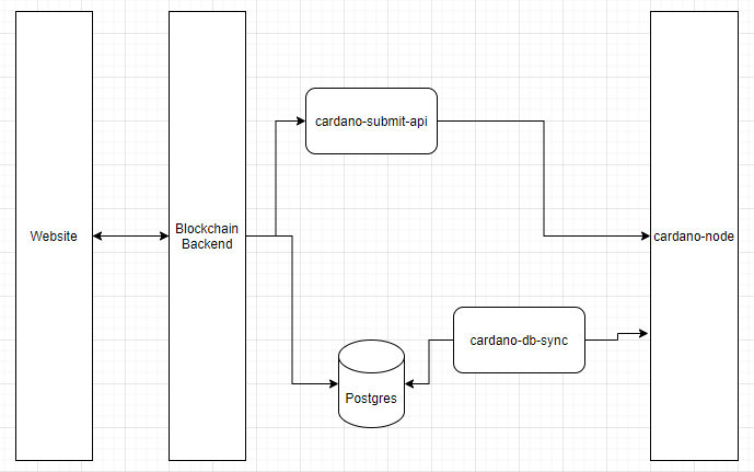 - Blockchain Backend 4. Handles logic for building transactions to be submitted to the blockchain 5. Provides a RESTful API for our frontend to interact with 6. Provides interoperability with Nami Wallet