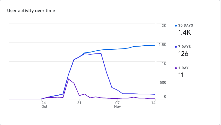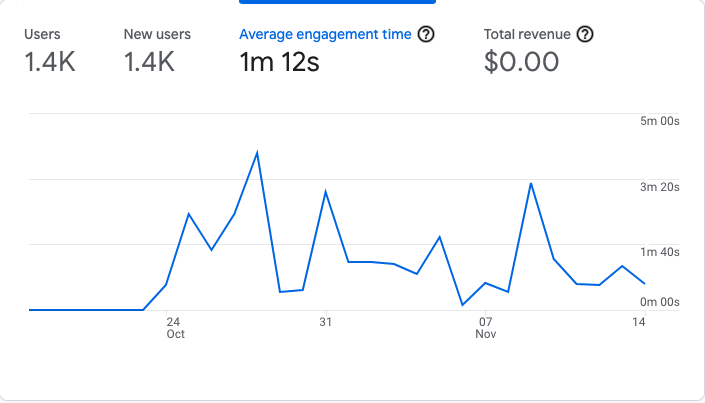 Currently, 1.4k users have tried our app with an average engagement time of 1m 12s.