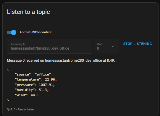 For those using Home Assistant, you can use the MQTT integration to display temperature, pressure, and humidity data from your sensors.