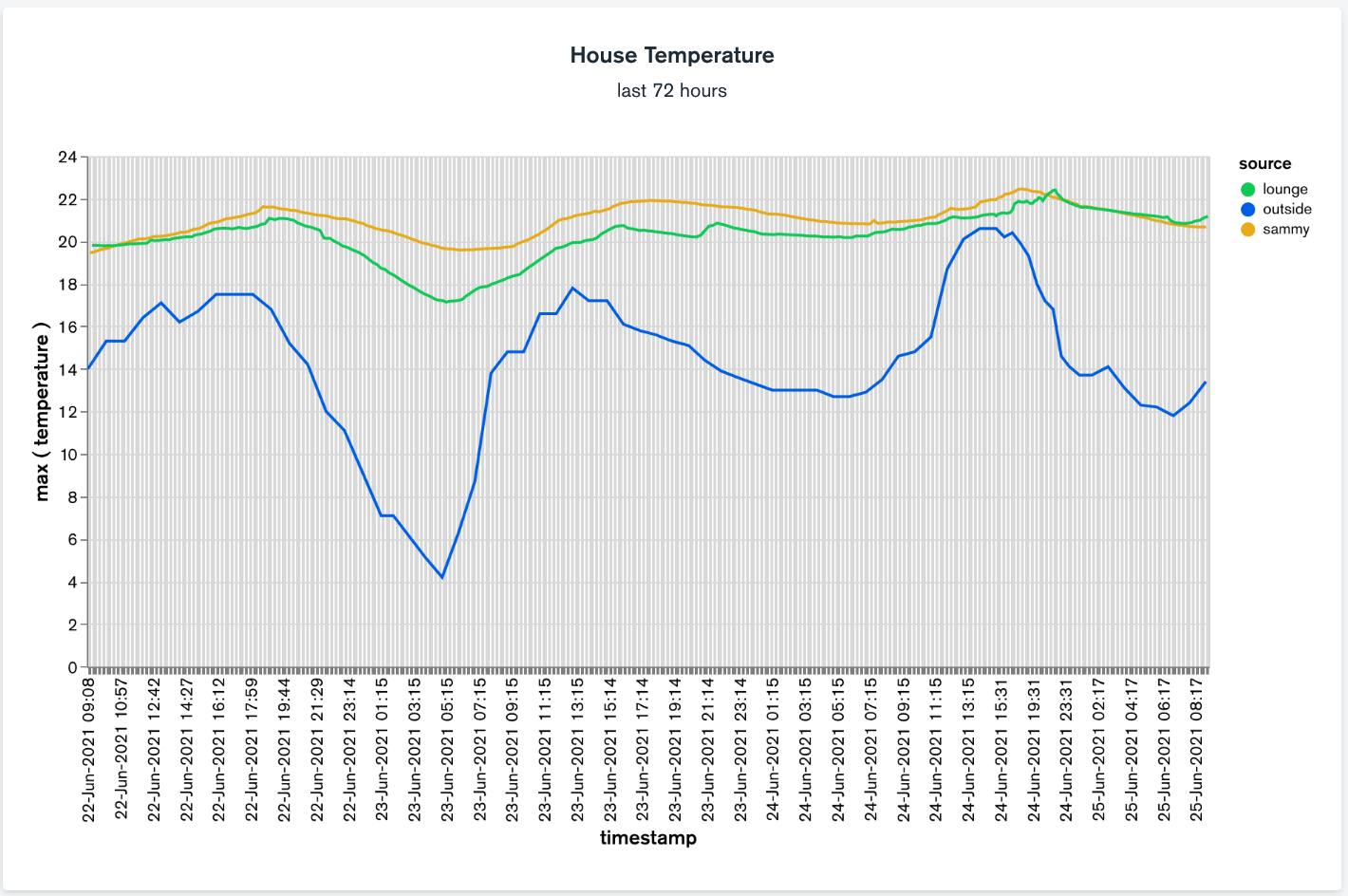 example Chart generated from BME280 data posted to Mongo Atlas and charted with Mongo Charts (all in free tier)