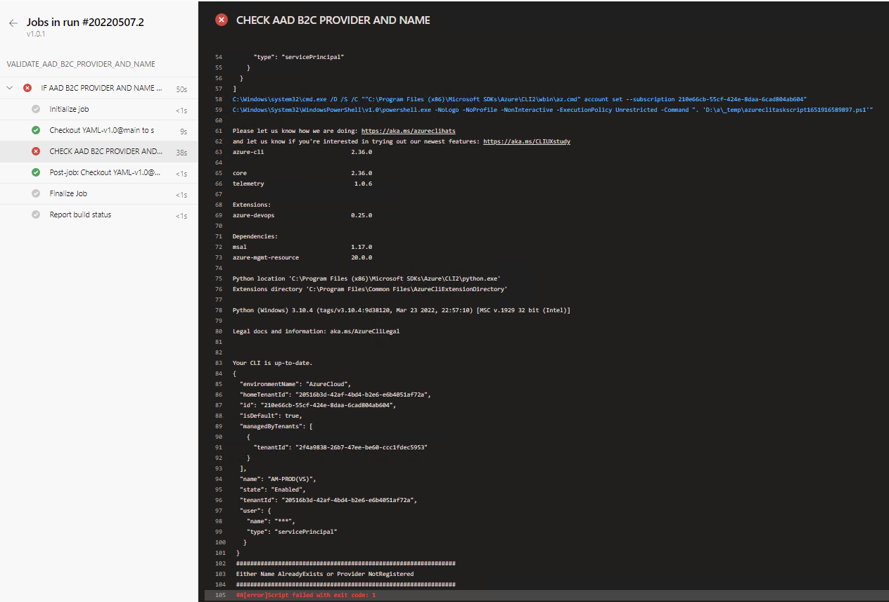 displayName: CHECK AAD B2C PROVIDER AND NAME
