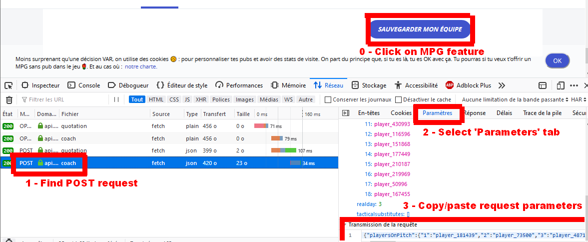Sample with FireFox and GET /league/[yourLeagueId]/coach page.