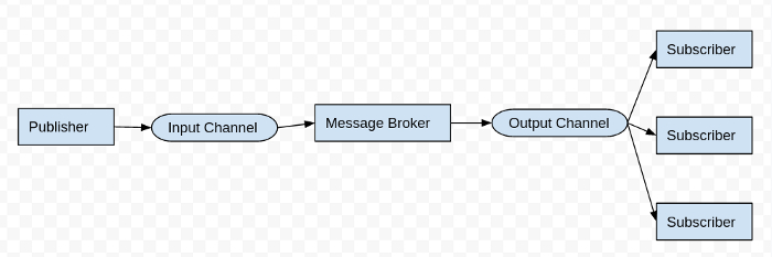 Message from the publisher is copied from the input channel to the output channel of interested subscribers, this mechanism is handled by the message broker. All these events occur asynchronously. There are many message broker and third-party services to facilitate the publish/subscribe protocol.