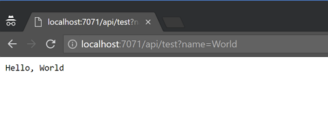func host start웹브라우저를 통해 http://localhost:7071/api/test?name=[아무거나]를 입력하고 결과를 확인합니다.