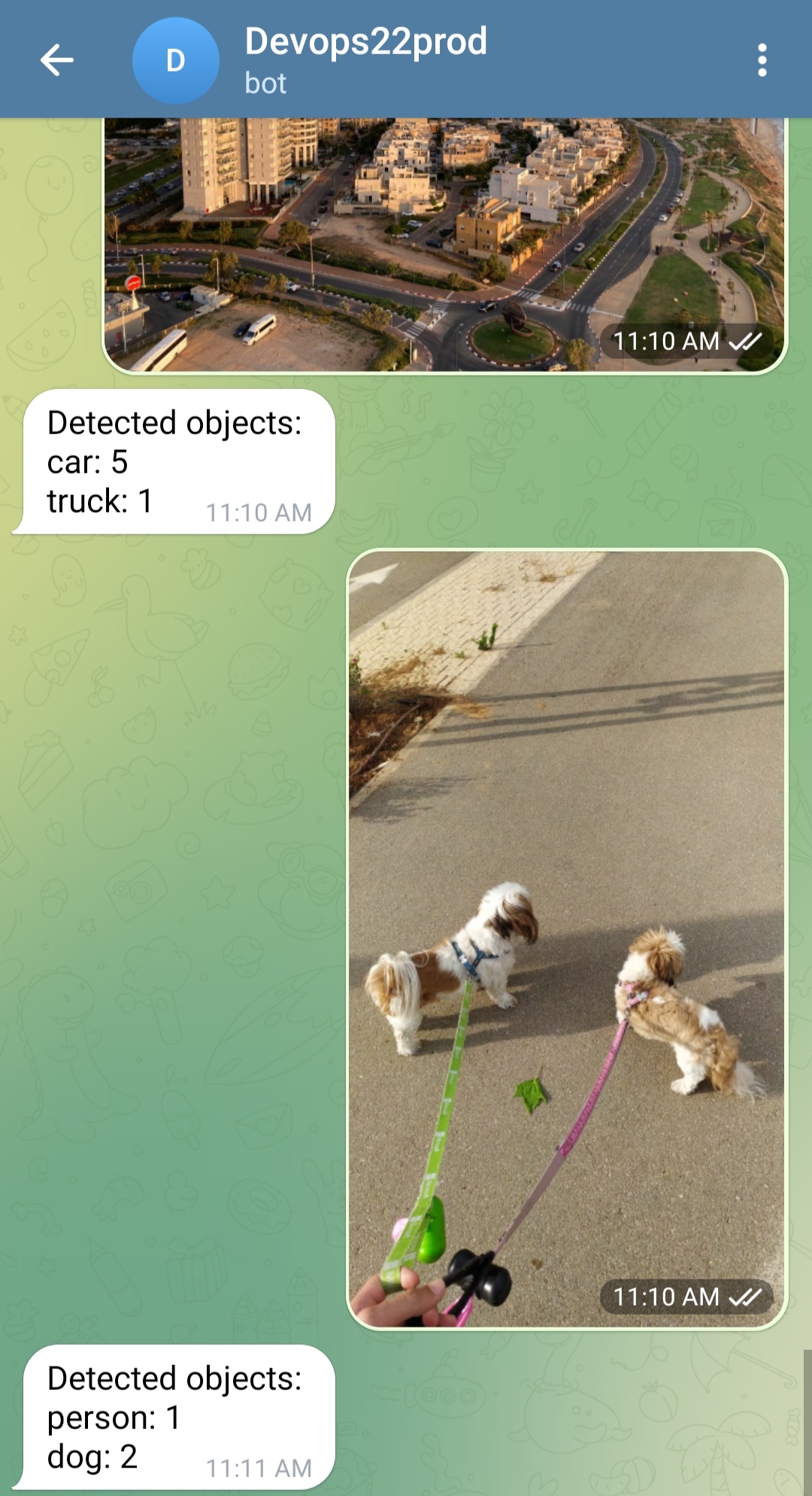 polybot: Telegram Bot app.yolo5: Image object detection container based on the Yolo5 pre-train deep learning model.mongo: MongoDB cluster to store data.