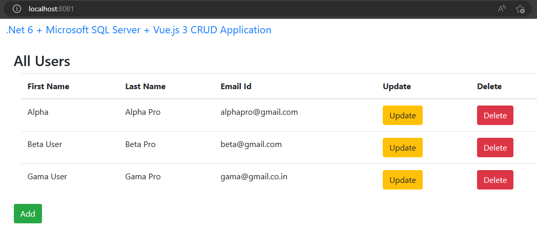 We will build a full-stack web application that is a basic User Management Application with CRUD features: