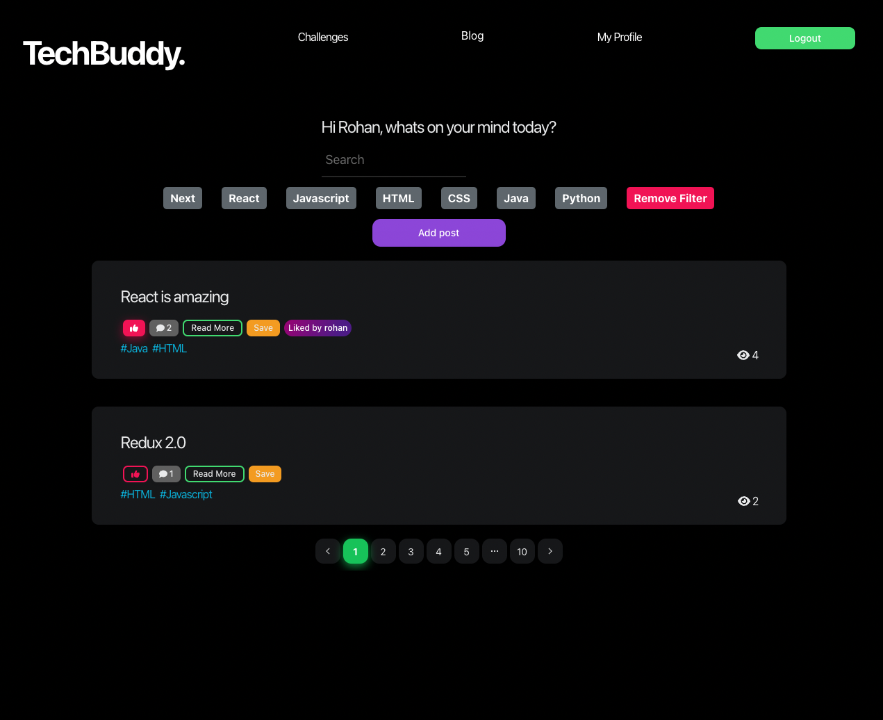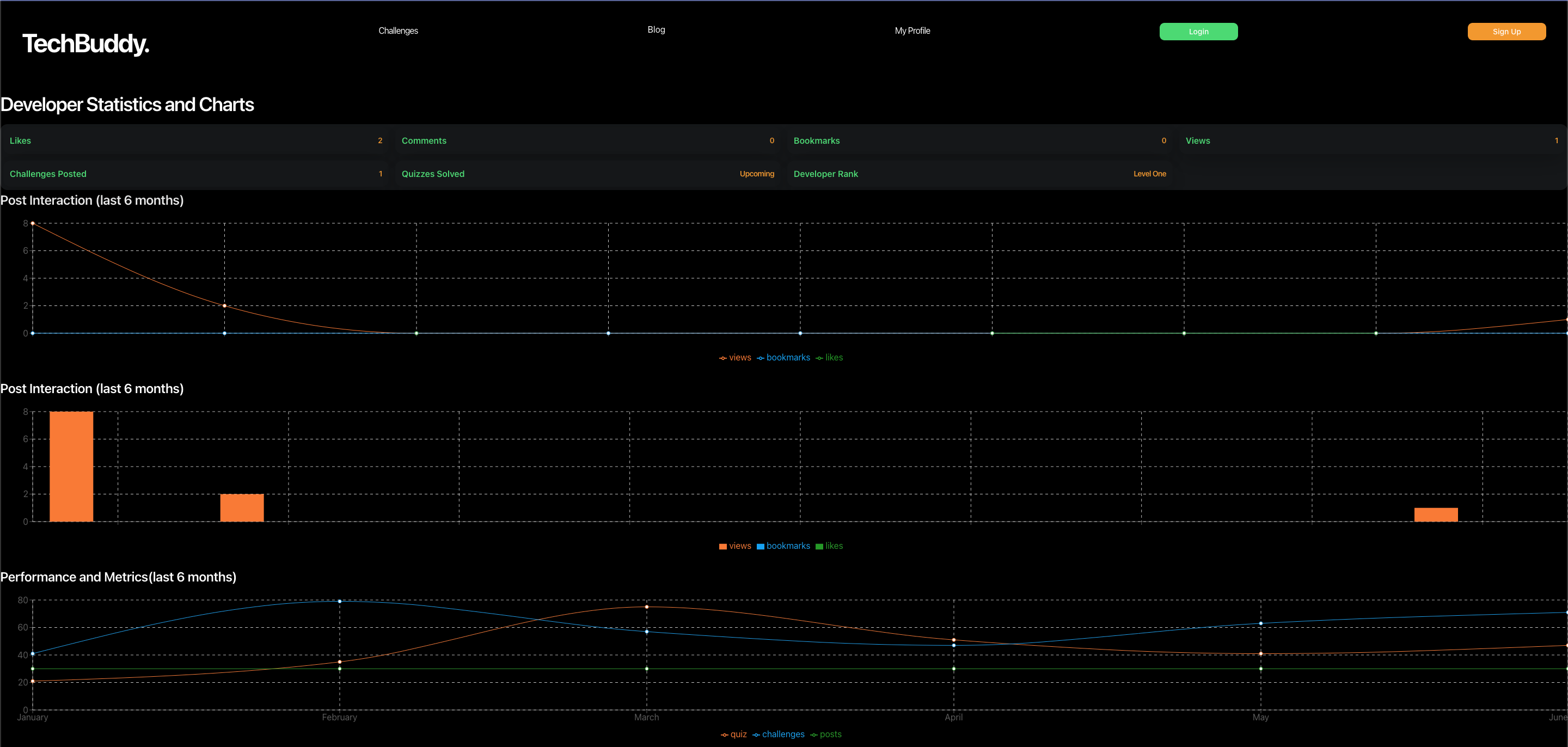 Tech buddy web application is designed to be a social media platform that caters specifically to developers who want to learn, explore, connect and grow with other techies. Users will have access to a range of features including analytics, challenges, quizzes, comments, and more, all designed to help them enhance their skills and knowledge. Our analytics feature will provide developers with real-time data about their performance and progress, allowing them to monitor their growth and identify areas where they need to improve. With our challenges feature, developers can put their skills to the test by completing challenges that are designed to motivate them. Developers can interact with each other through our comments feature, allowing them to share ideas, ask questions, and provide feedback to one another. Our platform will be easy to use, intuitive, and accessible from any device, ensuring that users can learn and grow wherever and whenever they want.