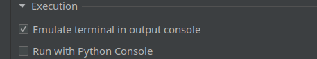 Other run configurations has options "Emulate terminal..." (python run) or "Execute in terminal..." (shell).