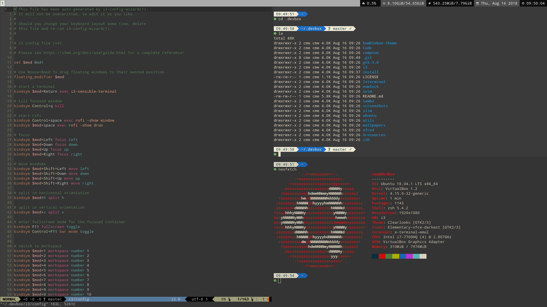 Desktop | custom fork of i3 with bumblebee-status and custom config | minimalistic, configurable, keyboard based |