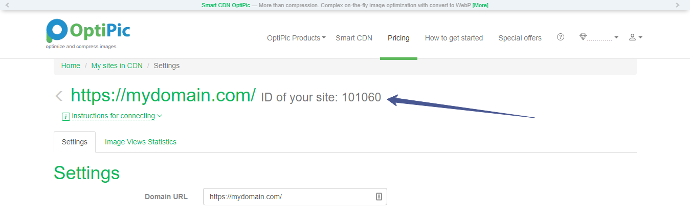 Register in your OptiPic CDN account and add a new site to your CDN control panel.