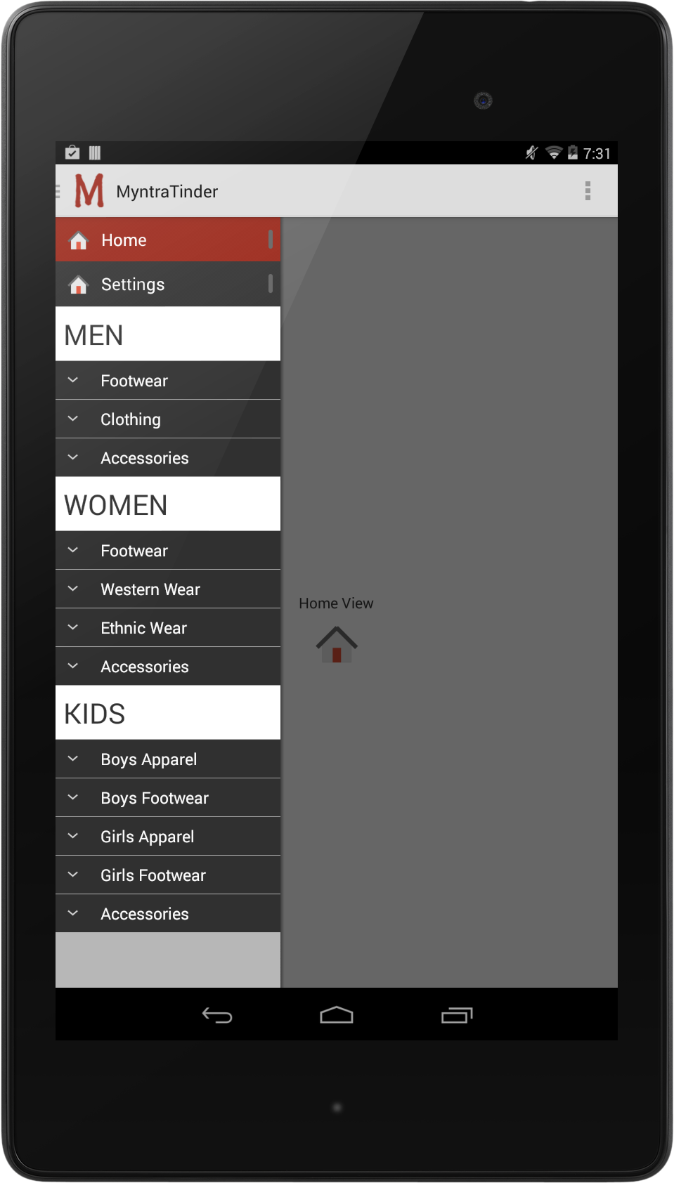 - MyntraCategory: A model that defines product categories, sub categories etc., and also an helper function to load these into our ExpandableListView.