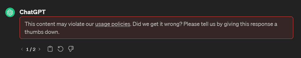 Regenerate ⟲ chat until a blocked content/response stay showed or hit the stop button before its blocked.