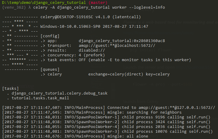 執行後, 你會發現 celery 的 terminal 會顯示一些資訊,