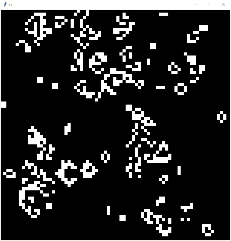 Game of Life implementation with a randomized initial grid state and drawn using TKinter.