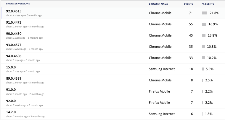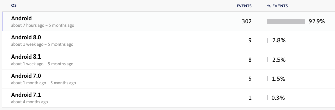 From the images above, it's hard to tell if it's just older versions of Android or not, since the most common OS reports as just Android.