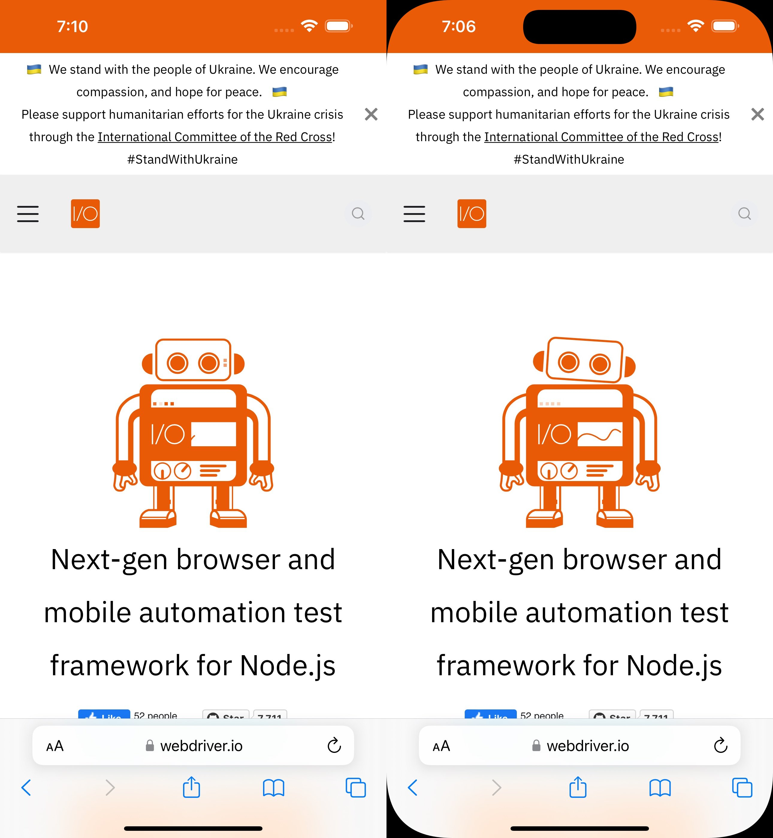 iOS device corners/notch/dynamic island can be added in the screenshots. This can be enabled with a new class-option which is called addIOSBezelCorners. If set to true the iOS screenshots will have rounded corners and, if applicable, the iOS notch/dynamic island. See below for an example.